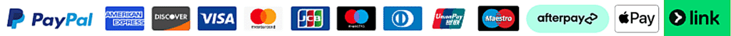 100%! We support Credit/Debit Cards, PayPal, Apple Pay, Afterpay installments, and Stripe Link. All payments are protected with SSL encryption, and sensitive information is never stored. Shop with confidence.